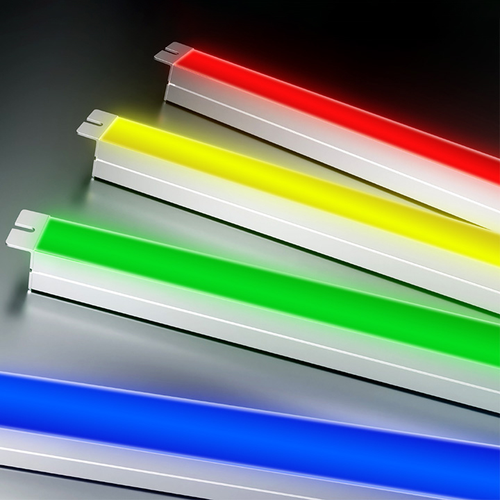 通过UL,CE,ROHS认证,标准控制RYGB,支持RGB混色最多8种色彩信号传递。NPN/PNP通用 , 尺寸100mm-20000mm 根据客户的要求定制。1200mm以下符合UL认证。同时支持DC12V和单片机RGB定制。